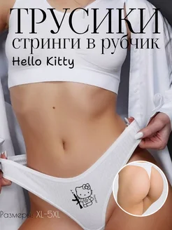 Набор трусов стринги в рубчик с принтом AK-Kitty 3 шт