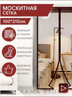 Москитная сетка на дверь магнитная 100*210 коричневая