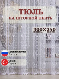 Тюль 300х240 в гостиную в спальню на кухню белый