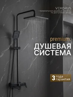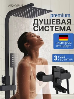 Душевая система с тропическим душем, черный матовый