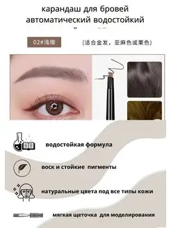 карандаш для бровей супертонкий, автоматический, водостойкий