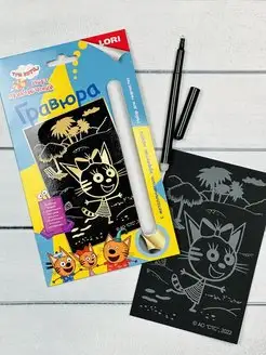 Гравюра фольга золото Три кота Карамелька Коржик Компот Лори