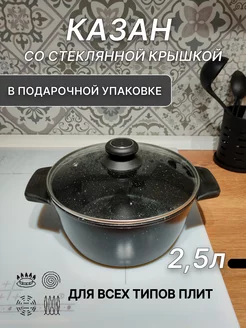 казан 2,5 литра стеклянной крышкой антипригарным покрытием