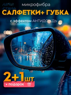 Набор тряпка для машины из микрофибры 2шт + губка антидождь