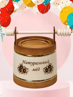 Мед натуральный, в подарочном бочонке из дерева, 0,5 кг