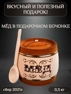 Маленький подарочный бочонок с мёдом 0,3 кг