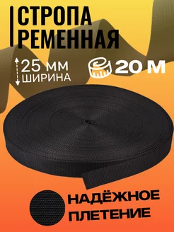 Лента (стропа) ременная 25 мм цвет черный, 5м