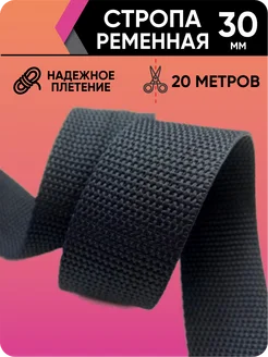 Лента (стропа) ременная 30 мм цвет черный, 20м