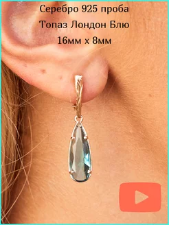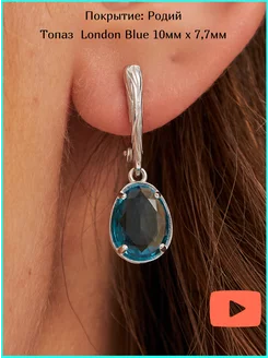 Серьги серебро 925 висячие с камнем Лондон топазом