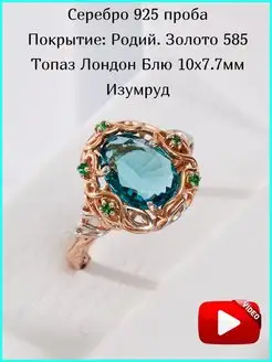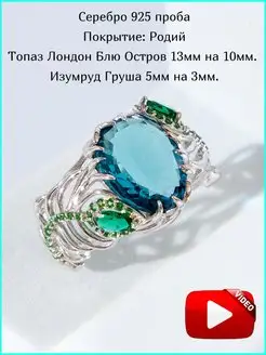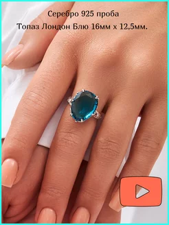 Кольцо серебро 925 с крупным камнем лондон топазом
