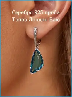 Серьги женские серебро 925 с камнем топаз лондон блю