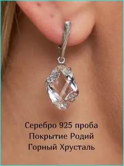 Серьги серебро 925 крупные с камнем горный хрусталь