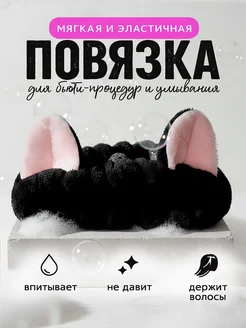 Повязка для умывания мягкая на голову с ушками