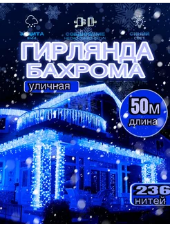 Гирлянда уличная бахрома 50 метров синий с мерцанием на дом