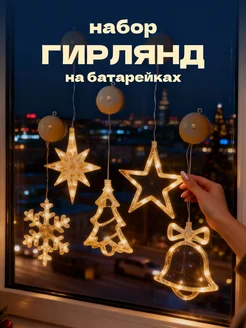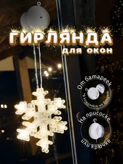 Гирлянда новогодняя на батарейках на окно Снежинка