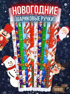 Новогодняя Синяя Шариковая Ручка Набор 12шт Подарочные