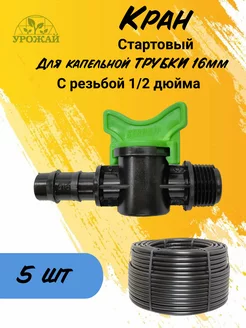 Кран для капельной трубки 16мм с резьбой 1 2 дюйма (5шт)