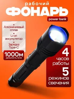 Фонарик аккумуляторный ручной на батарейках светодиодный