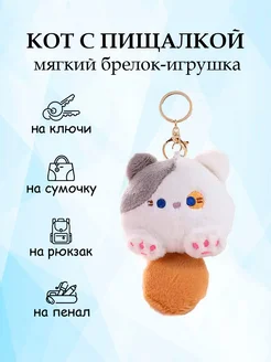 Мягкий брелок заводная игрушка Котик с рыбкой