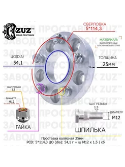 Проставка 1шт 25мм 5*114,3 54,1 Гайка Шпилька М12*1,5