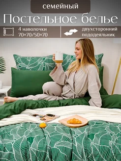 Постельное белье семейное с 2 пододеяльниками листья