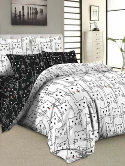 Постельное белье семейное с 2 пододеяльниками комплект Коты