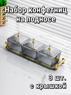 Менажница с крышкой ваза для конфет на подносе 3 шт