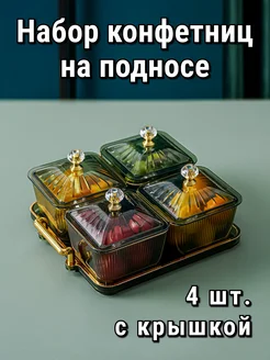 Менажница с крышкой ваза для конфет на подносе 4 шт