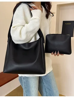 Сумка большая черная а4 с косметичкой на плечо шоппер