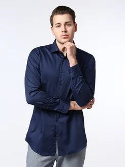 Рубашка темно-синего цвета из хлопка прямого кроя