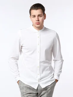 Рубашка из хлопка прямого кроя с воротником стойкой