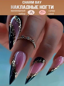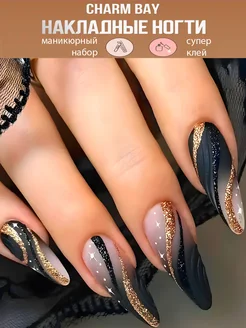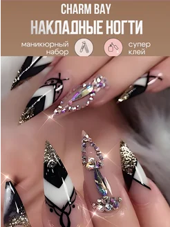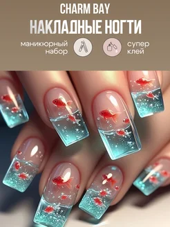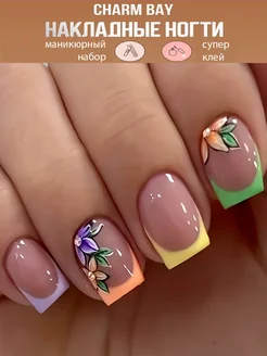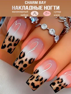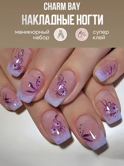 Накладные ногти с красивым дизайном с клеем 24 шт