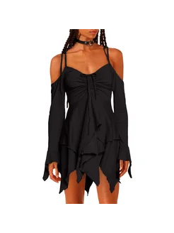 Рваное платье сказочное асимметричное открытые плечи черное