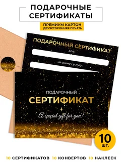 Подарочные сертификаты на услуги c конвертом 10 шт