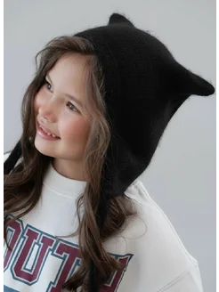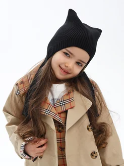 Шапка-чепчик детская черная для девочки с ушками демисезон