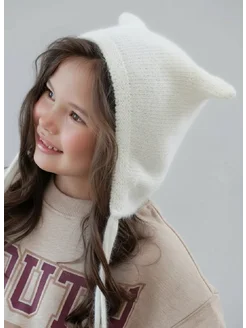 Шапка-чепчик детская бежевая для девочки с ушками демисезон