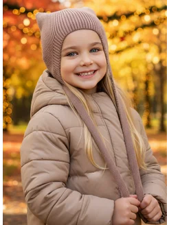 Шапка-чепчик детская мокко для девочки с ушками демисезон