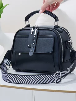 Сумка кросс боди через плечо с ручкой черная маленькая