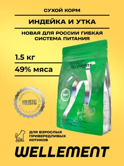 Сухой корм для взрослых кошек с индейкой и уткой, 1.5 кг