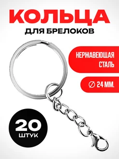Кольцо для брелков с цепочкой и карабином 20 шт