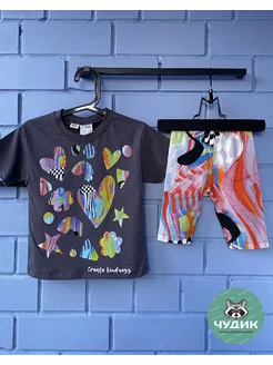 Комплект велосипедки и футболка звезды сердца ZARA KIDS