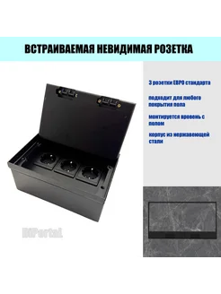 Встраиваемая невидимая розетка в пол на 3 евро разъёма