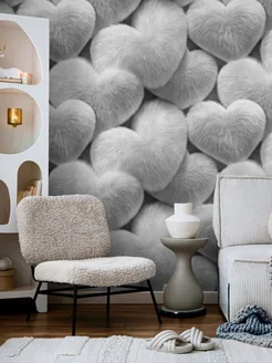 Обои флизелиновые метровые 3D-эффект Пушистые сердца