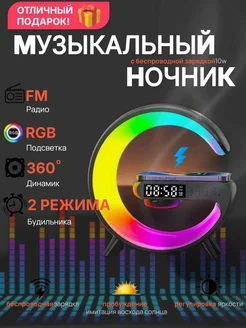 Умный светильник ночник с беспроводной зарядкой и колонкой