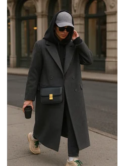 Пальто длинное оверсайз осеннее серое