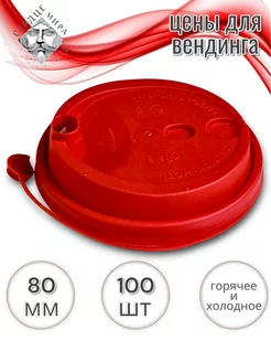 Красные крышки для стаканов одноразовые с клапаном 80 мм
