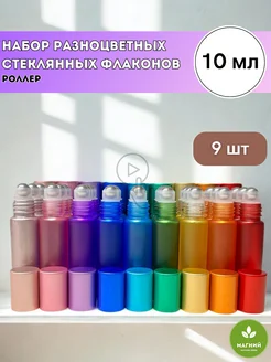 Стеклянные флаконы роллеры 10 мл, 9 цветов набор