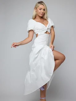 Платье со сборкой макси и открытыми плечами