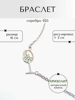 Браслет из серебра 925 пробы бокал белого вина хризолит