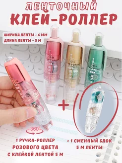 Ручка клей роллер ленточный 360 градусов со сменным блоком